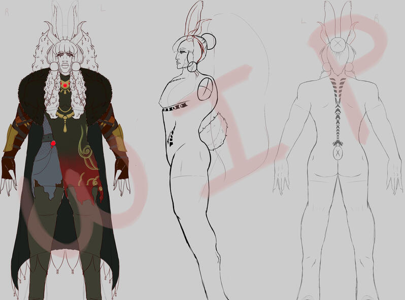 *Preview of current way of creating character reference sheet listed below (includes three angles of turn around, one version of clothing and underwear)